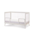 Suitable from birth, the Maya cot bed will grow with your little one. The top position of the three height-adjustable mattress base allows you to put down your baby with less pressure and strain applied to your back and as they develop and start to find their feet, you can maintain their safety by lowering the base. When your little one is ready to begin their transition, the included dual ended safety rail will provide reassurance and familiarity during an often daunting time and once they are used to their “big bed” this can be simply removed to create a stylish toddler bed.