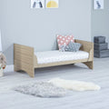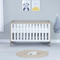 The Babymore Veni Cot Bed has a very sleek appearance. Its simple design makes it a chic addition to any Nursery. With its warm oak and white wood finish, the Veni Cot Bed is at home in either a modern or classic setting.
